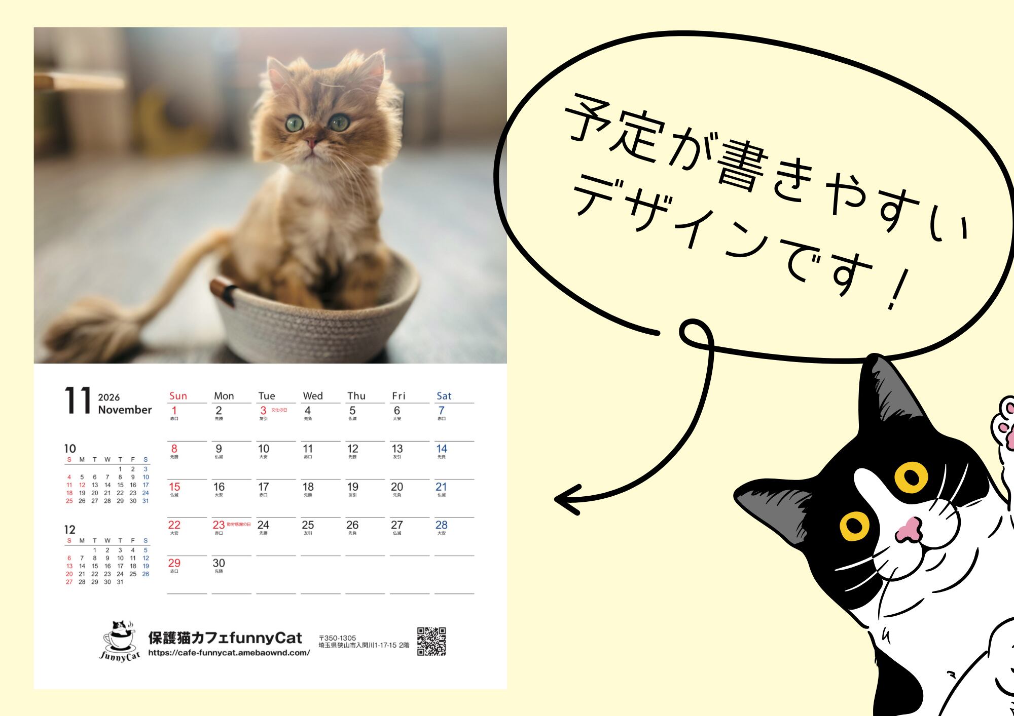 2026年 funnyCatオリジナル壁掛けカレンダー。